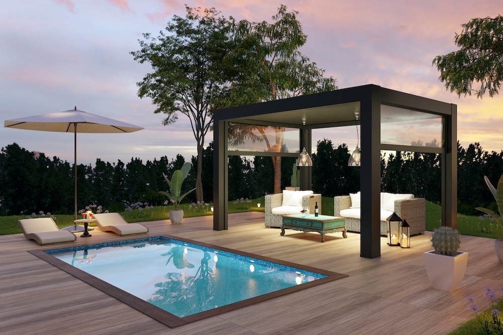 Este tipo de estructuras pueden complementarse con mobiliario como mesas, sillas, tumbonas e incluso una zona de parrilla o barbacoa, convirtiendo el espacio exterior en un verdadero oasis de confort