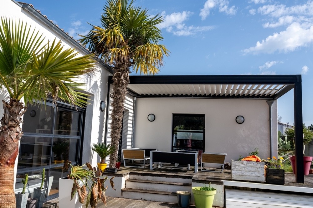 Otra de sus características es que la terraza bioclimática puede ser abierta, contando únicamente con la pérgola o puedes hacer un cerramiento completo, anexionando la terraza al interior de tu vivienda.